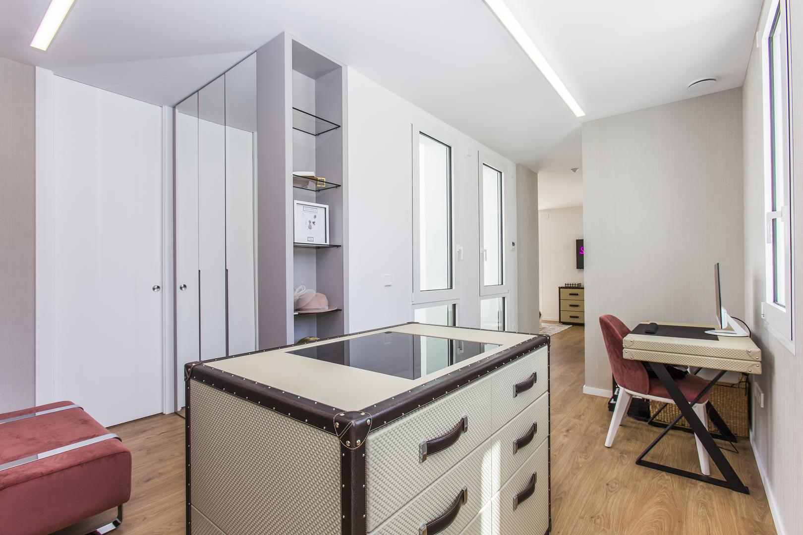 Para asegurar el cumplimiento de los rigurosos estándares PHI, se realizó un exhaustivo estudio de la envolvente, aplicando aislamientos exteriores de alta densidad en fachadas, cubierta y bajo la propia cimentación. La hermeticidad se garantizó mediante una imprimación interior aplicada meticulosamente para sellar cualquier poro en la estructura. Crucial para la eficiencia fue la protección solar pasiva, que se logró a través del control preciso de los huecos, la orientación estratégica de la vivienda y la instalación de venecianas correderas exteriores que permiten gestionar la incidencia solar. Este diseño se completa con la integración de instalaciones de alta eficiencia en ventilación y climatización, asegurando un confort interior constante con un consumo energético mínimo.