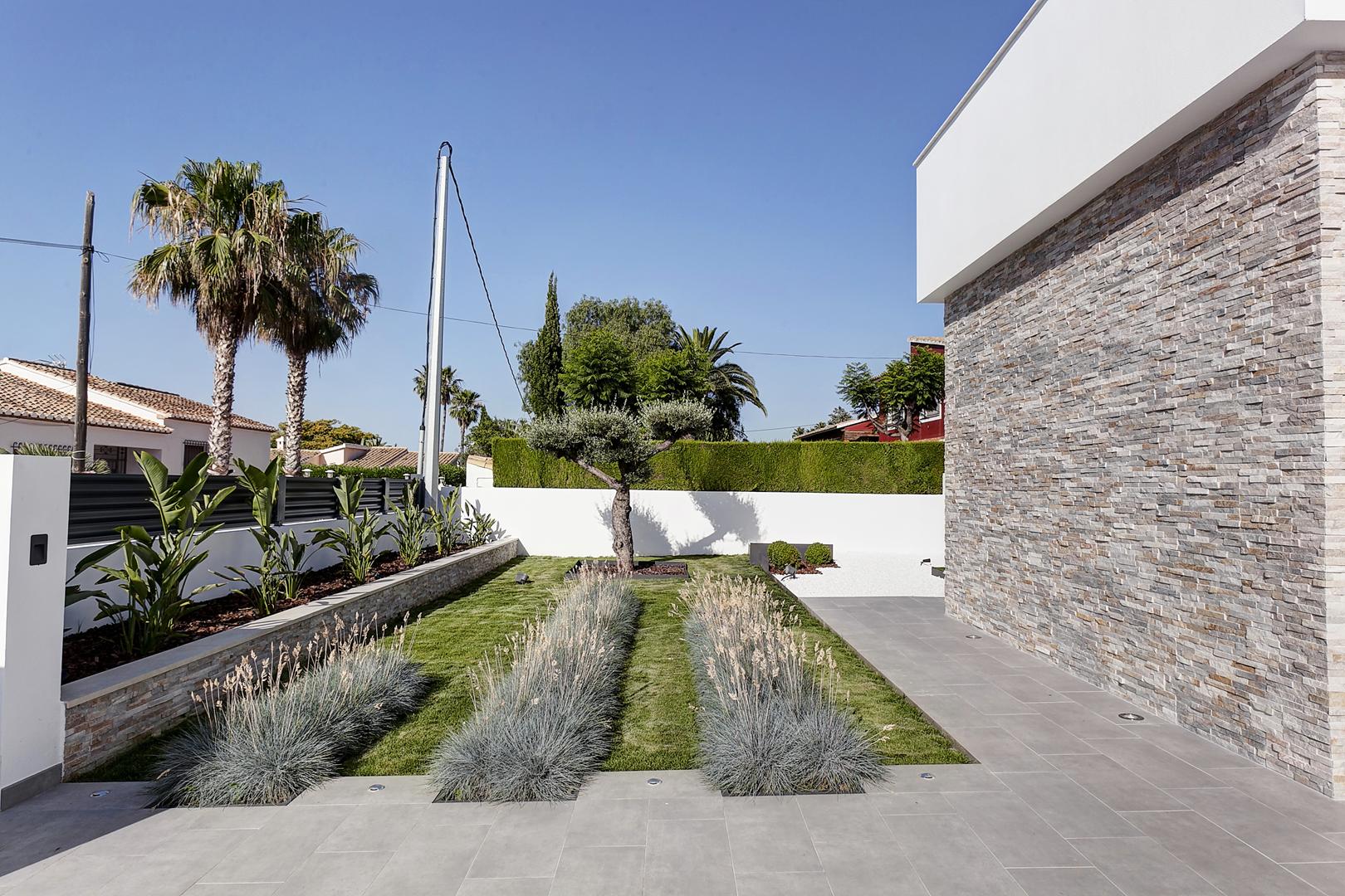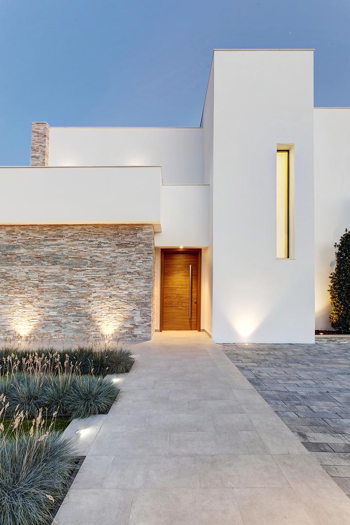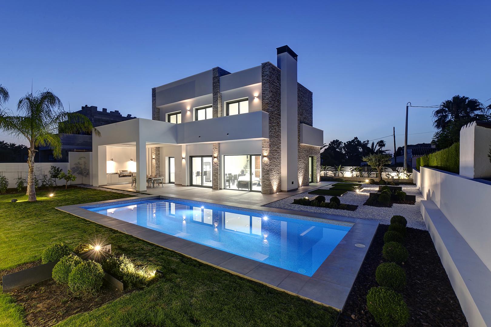 Esta moderna vivienda unifamiliar de nueva construcción se ubica en una zona tranquila y próxima al Parque Natural del Montgó, en Dénia. El diseño arquitectónico se resolvió en dos plantas para optimizar la funcionalidad y la separación de usos.