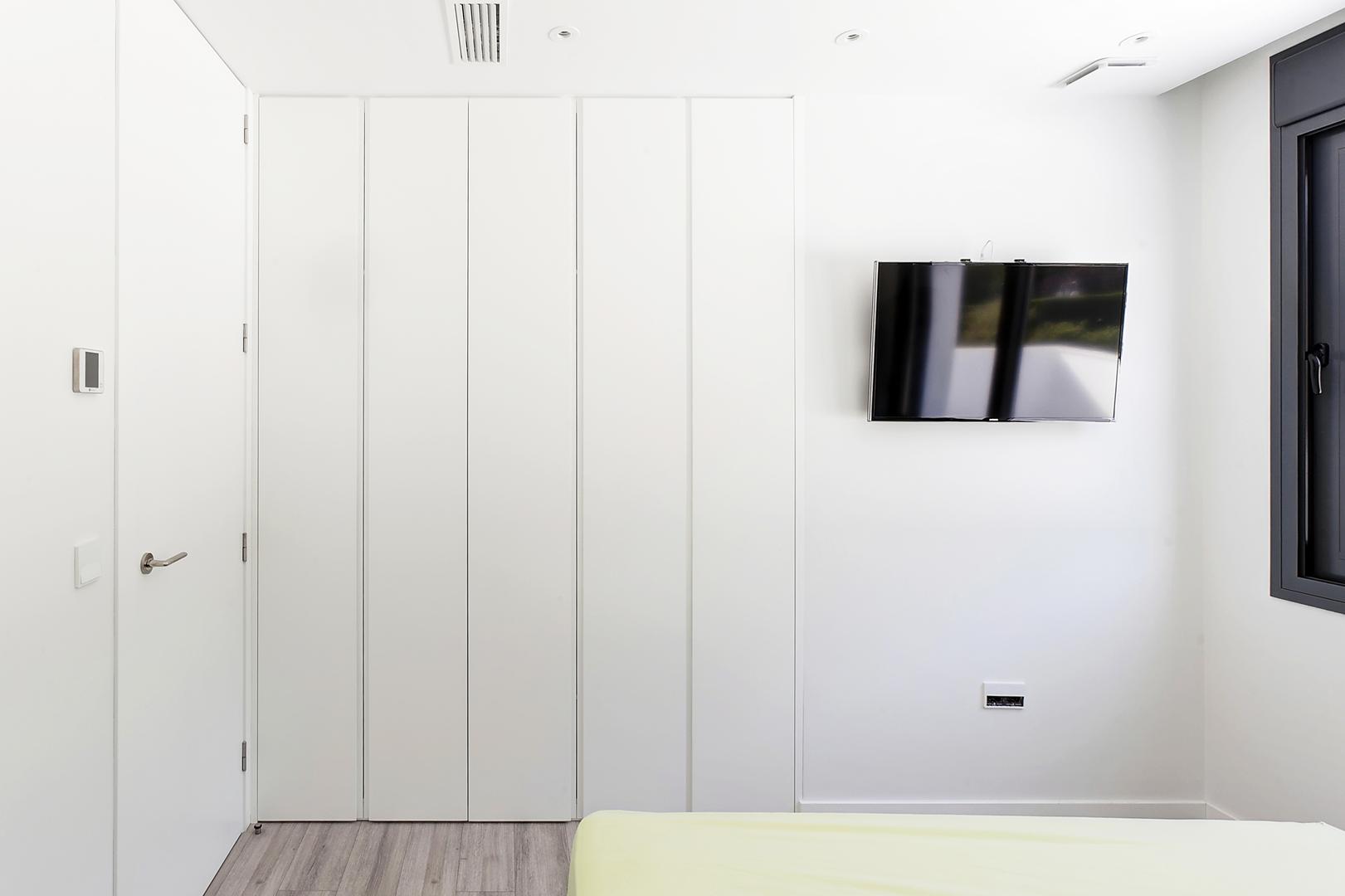 La segunda planta está dedicada por completo a la zona de noche, albergando tres dormitorios –cada uno con sus respectivos armarios empotrados– y un baño con bañera. Esta distribución en altura asegura la privacidad y el descanso. En conjunto, la arquitectura se centra en un diseño limpio y funcional que facilita una vida cómoda y conectada con su entorno.