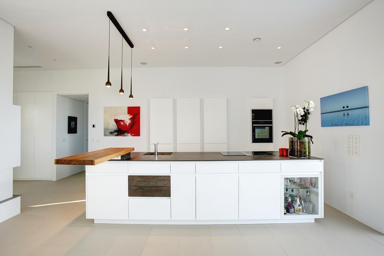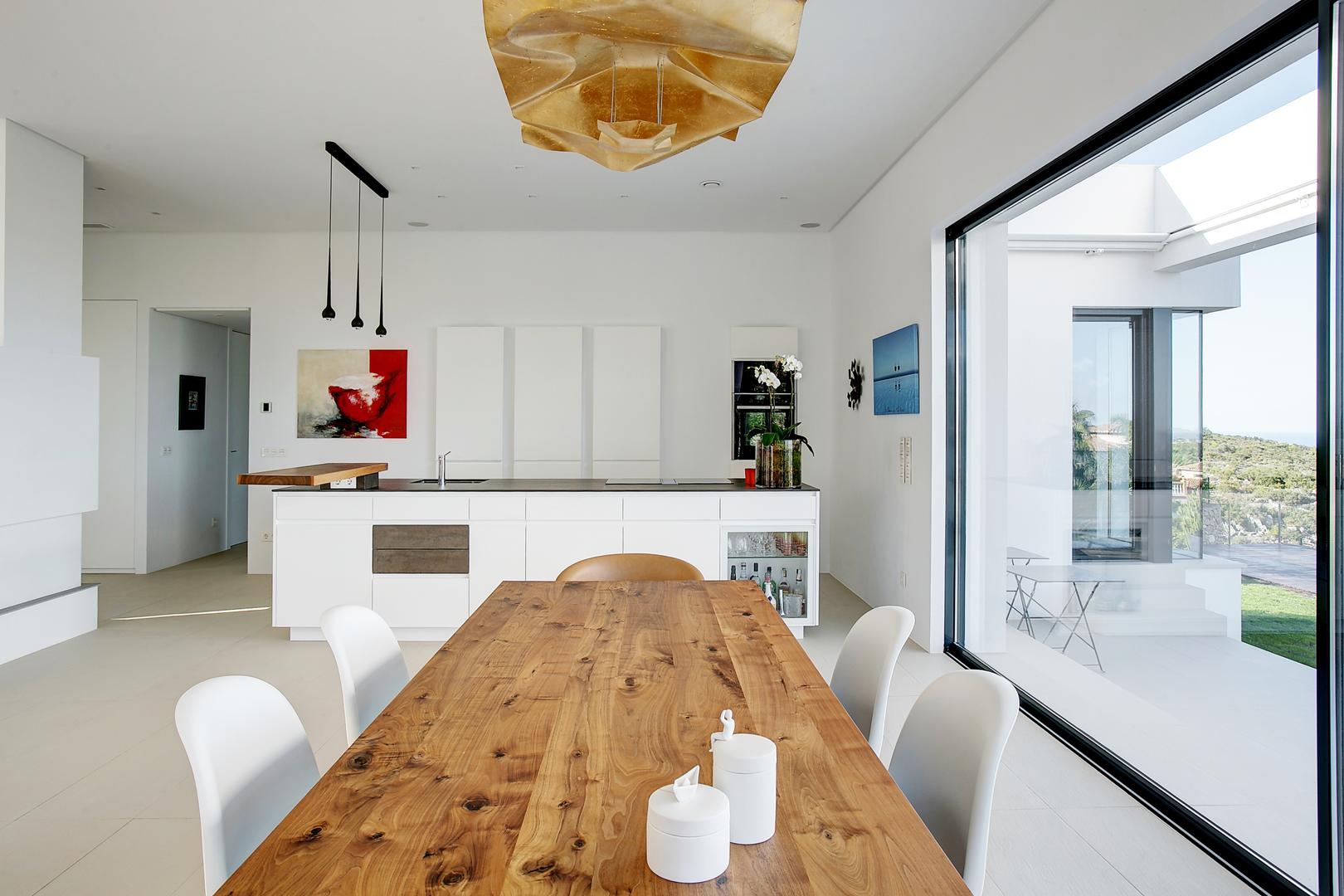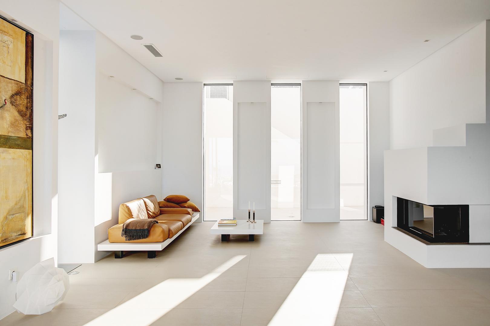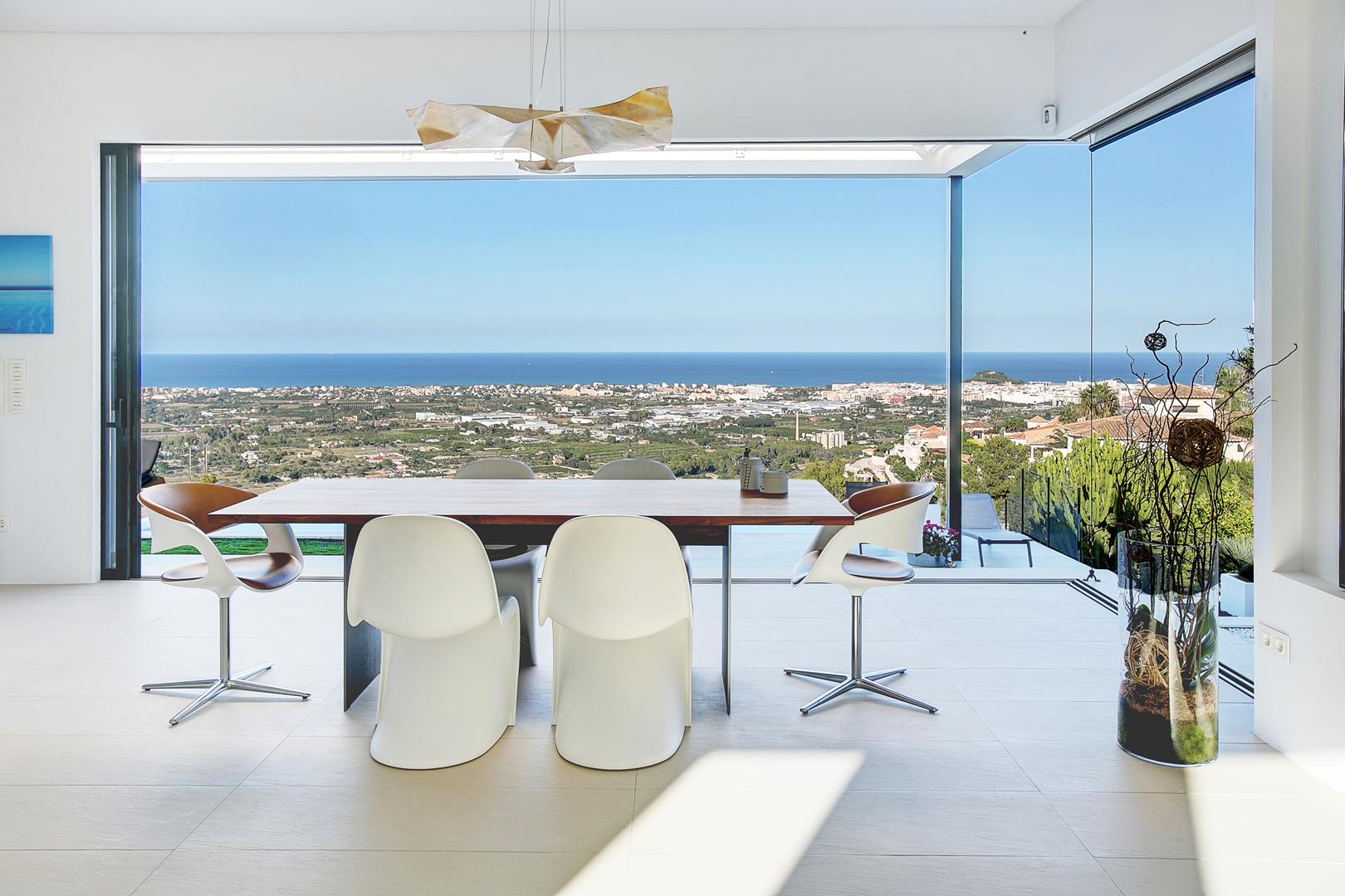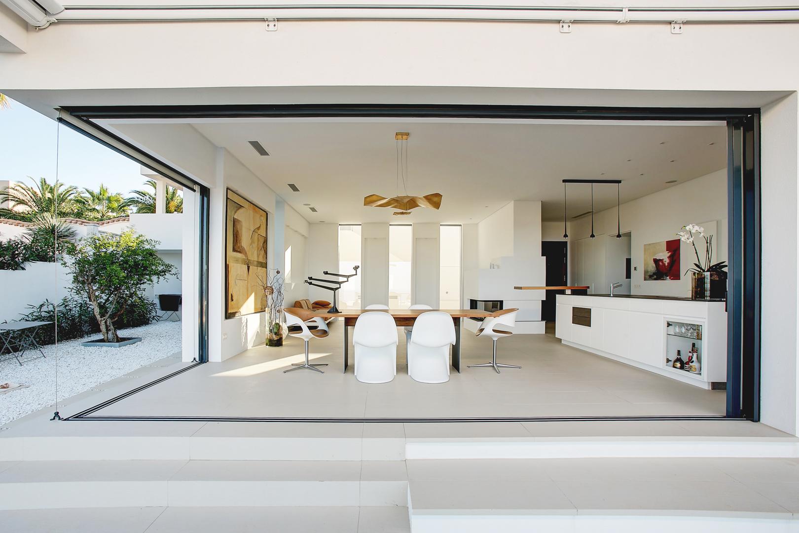 Como herencia del movimiento moderno, se recuperó el concepto de esquinas invisibles con ángulos de vidrio, una solución que, con su extensión visual, logró una sensación de expansión que supera las dimensiones reales de la vivienda. Para lograr un espacio completamente abierto y fluido al jardín y las privilegiadas vistas al mar, la carpintería se dispuso de manera que desaparece totalmente dentro de los muros al abrirse, propiciando un área totalmente integrada con el exterior. Arquitectónicamente, fue un verdadero disfrute trabajar en colaboración con el propietario, que también es arquitecto de profesión, enriqueciendo el proceso creativo.