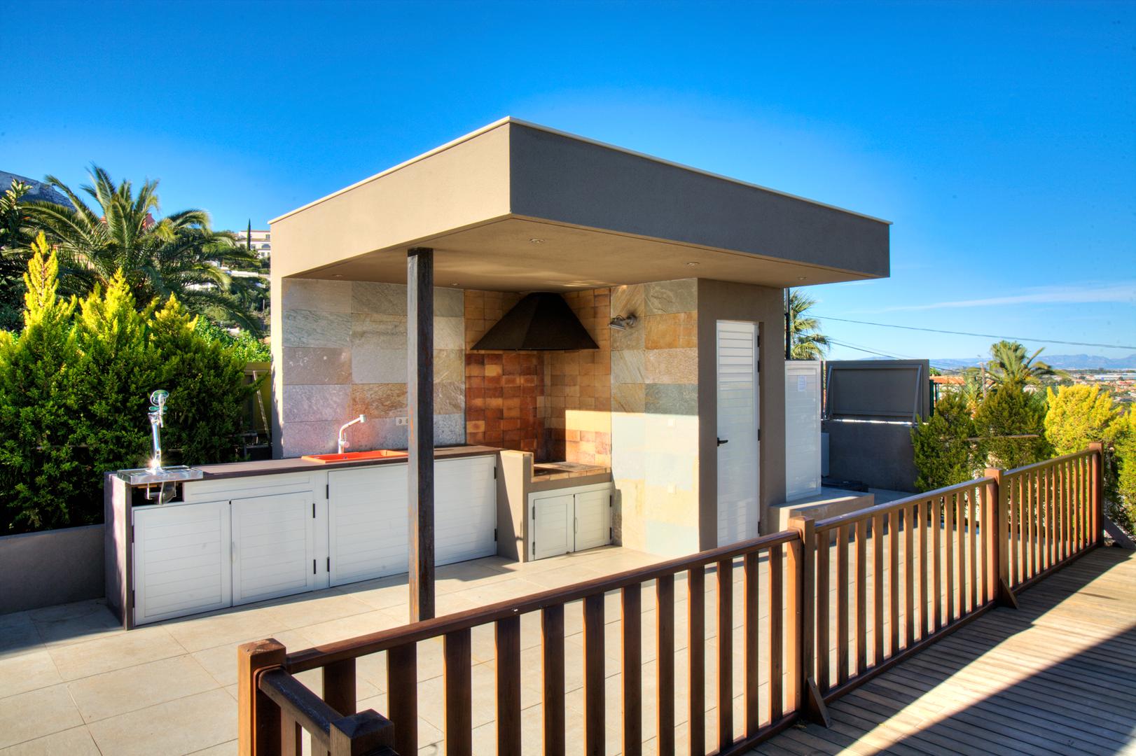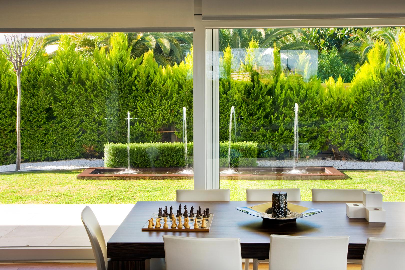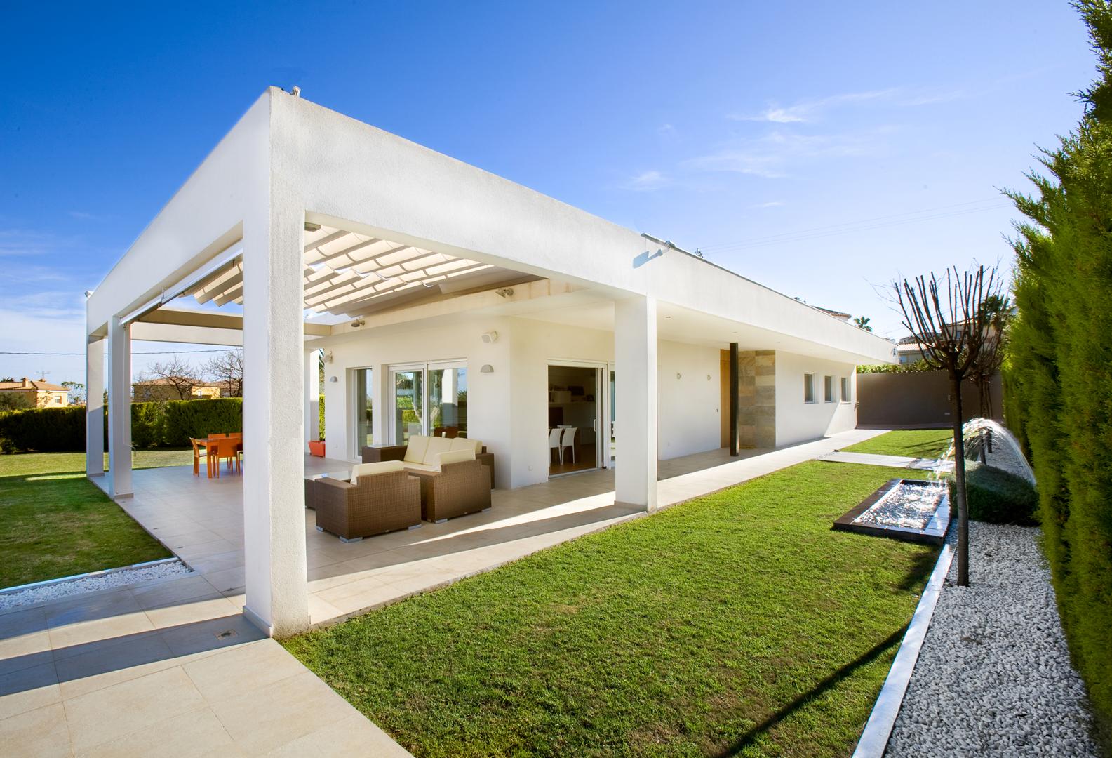 Esta villa de diseño actual, ubicada en una amplia parcela en las faldas del Montgó, Dénia, fue concebida con el objetivo de ofrecer todas las comodidades en una sola planta. La forma alargada de la vivienda y la disposición horizontal de las habitaciones principales fueron dictadas tanto por la geometría singular de la parcela como por los requisitos de accesibilidad del cliente.