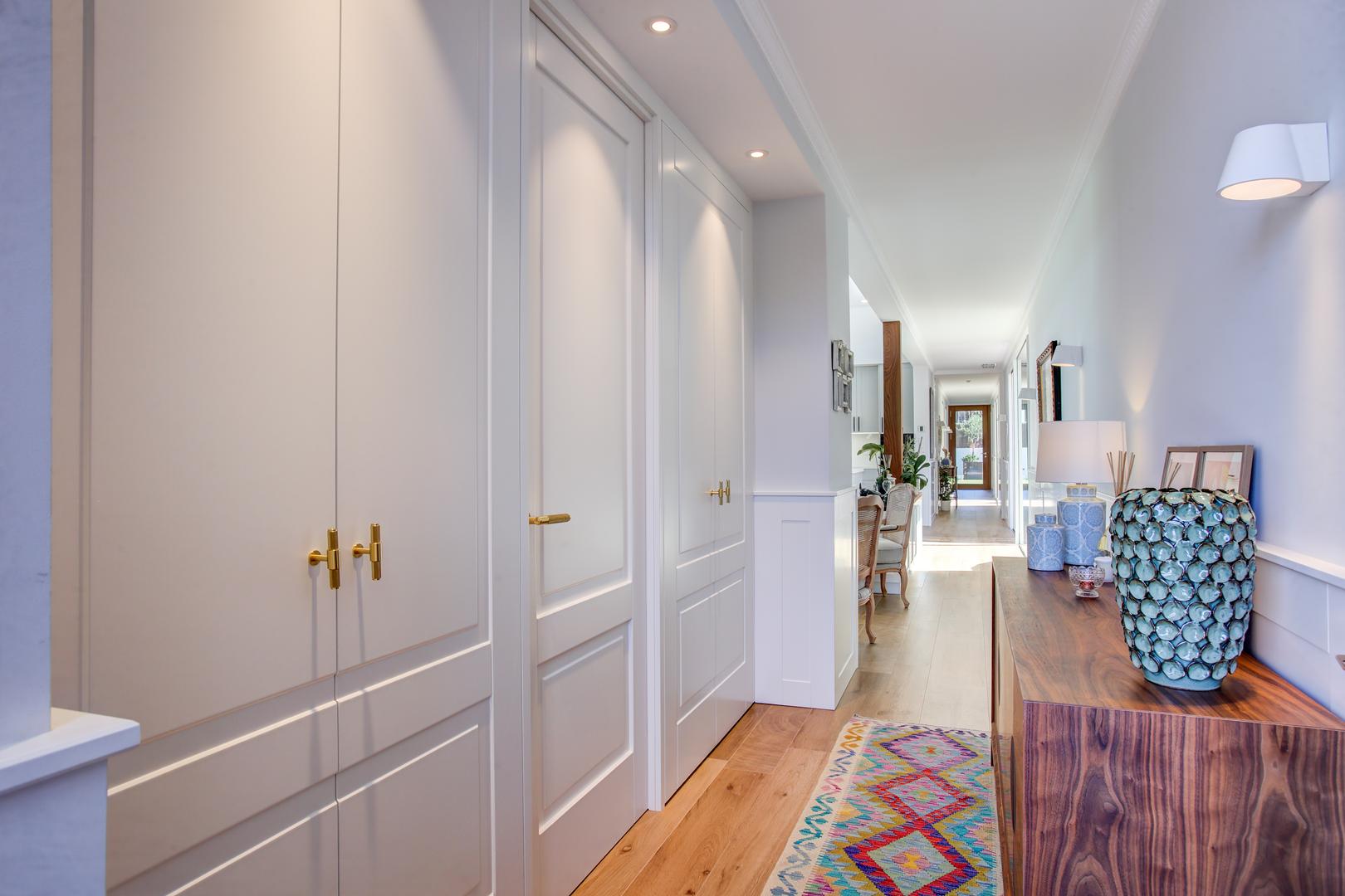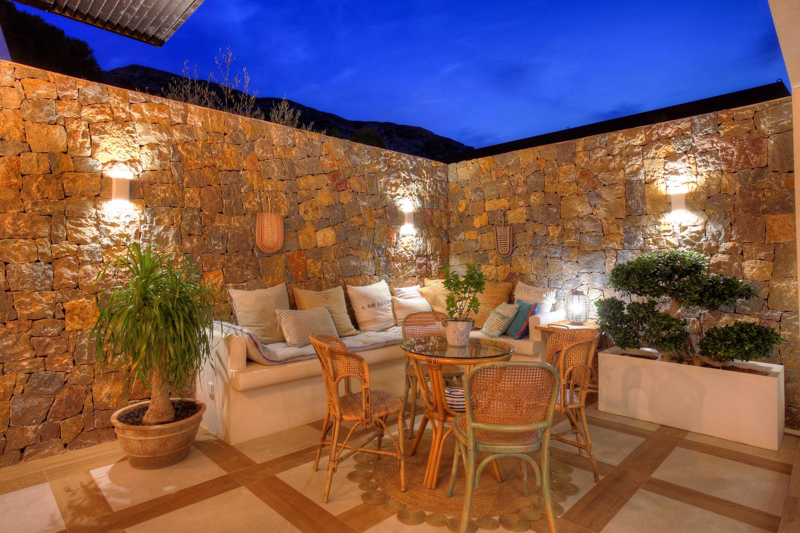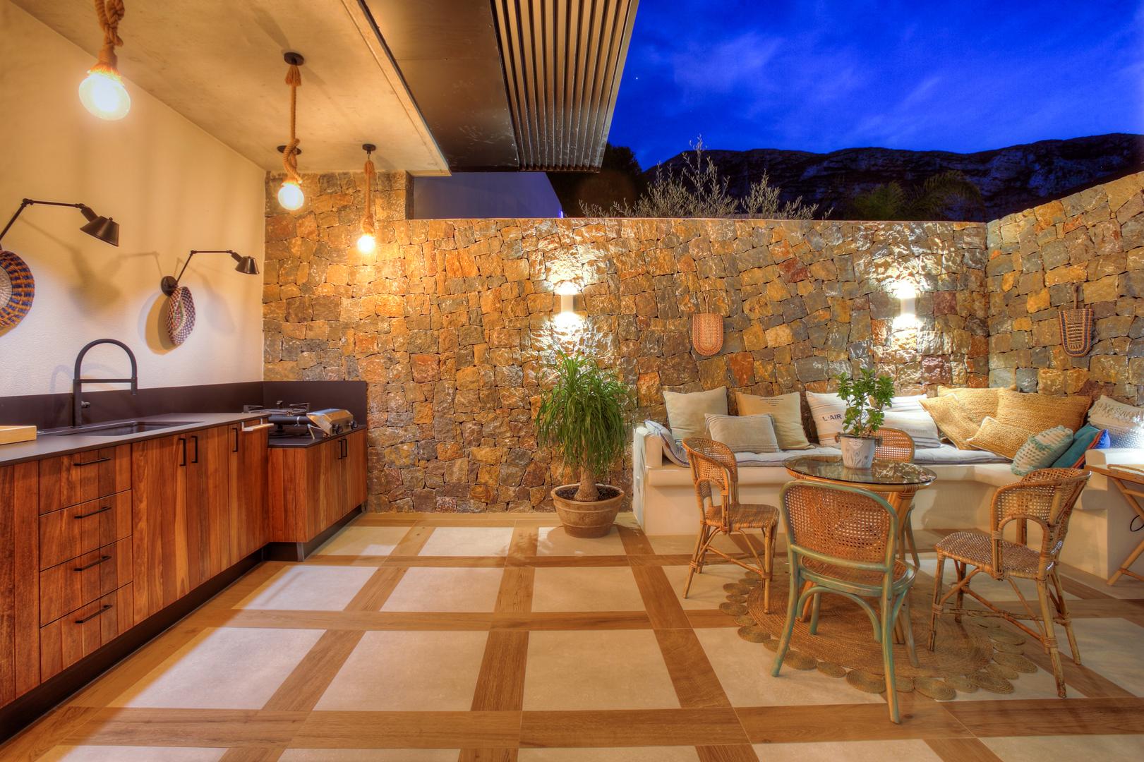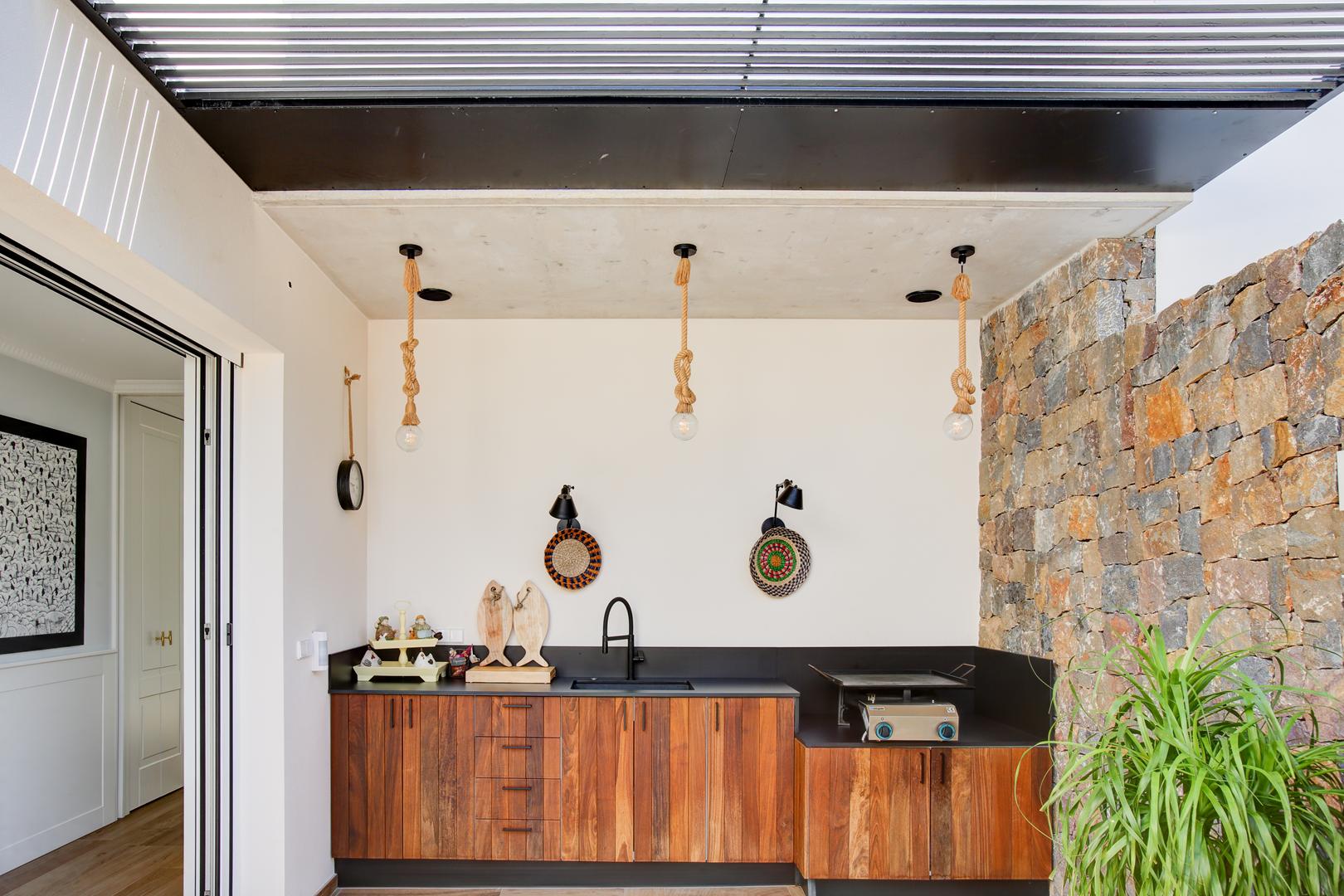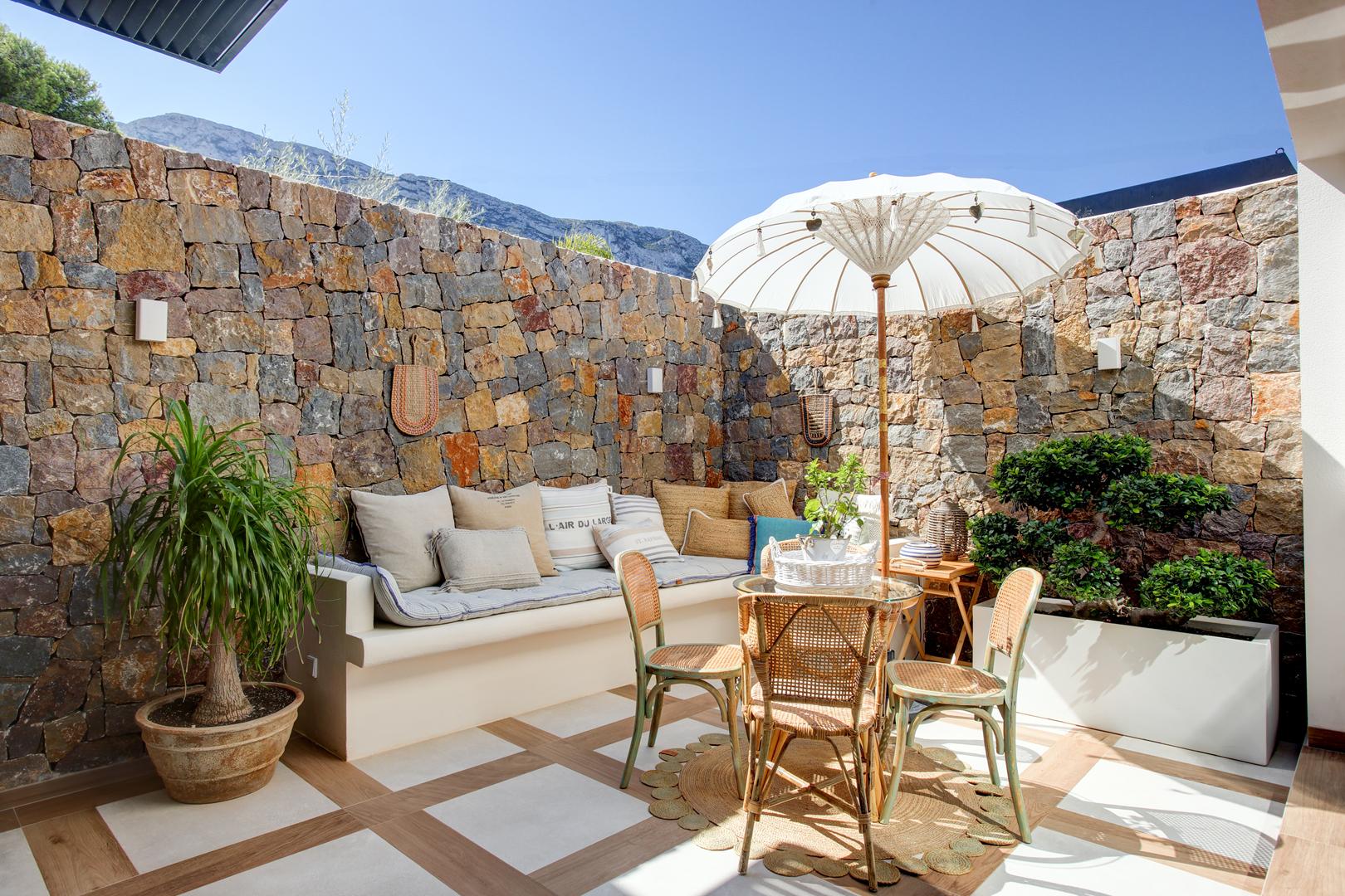 Se buscaba sensaciones de vivienda unifamiliar aislada y el desafío principal fue buscar recursos que garantizaran la ventilación y la iluminación naturales en todas las estancias, sin comprometer la privacidad entre las unidades. La composición geométrica se sintetiza en un eje principal que se enfatiza con la presencia de muros de piedra natural que atraviesan longitudinalmente la parcela. A este eje se adhieren e intercalan una serie de espacios cerrados y abiertos (patios interiores). El programa se desarrolla en torno a un amplio espacio común, cuatro dormitorios, tres baños, un lavadero y dos patios. Este diseño permite a los propietarios experimentar una rica variedad de sensaciones espaciales a lo largo del recorrido del eje principal.